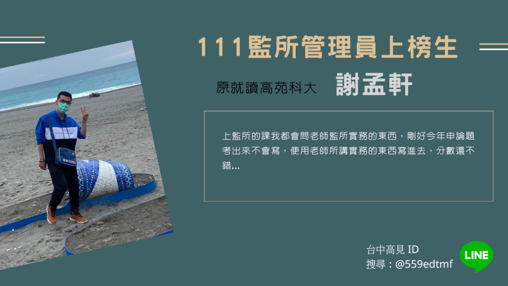 【111年】正取監所管理員|高苑科大_謝孟軒上榜心得