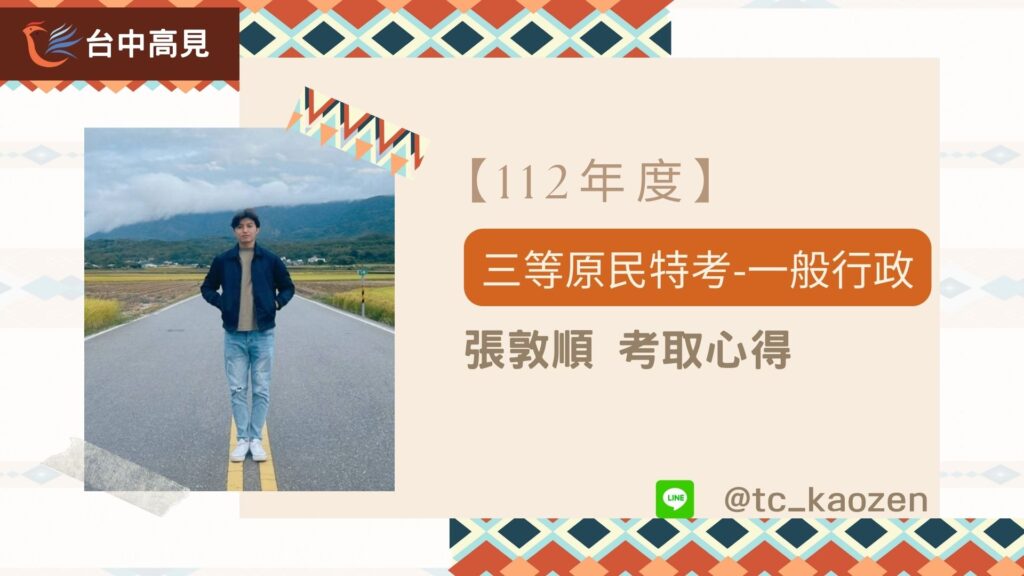 【112年原住民特考】 三等一般行政全國第4名|義守大學_張敦順上榜心得