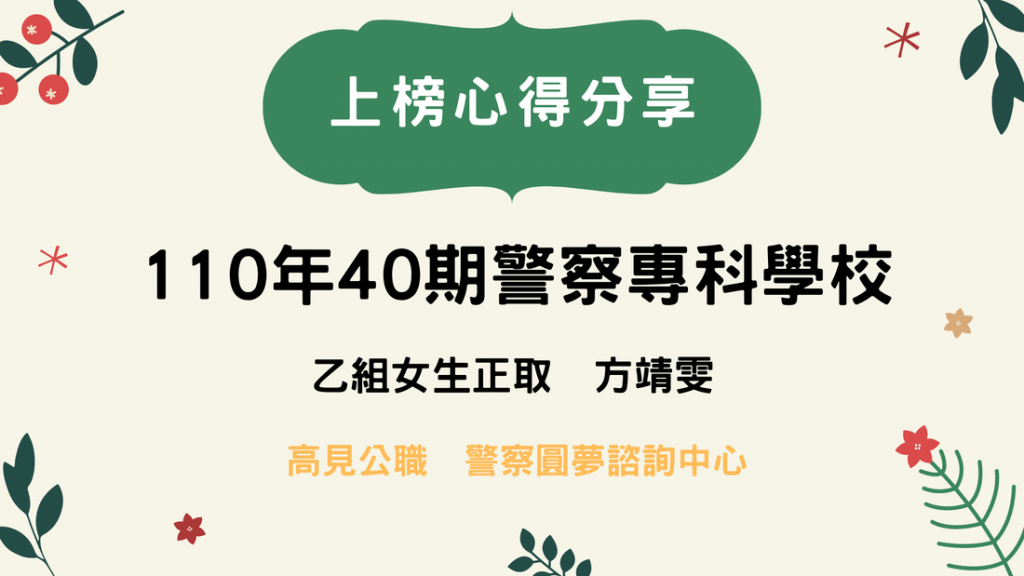 3月在網路上報名了高見警專模擬考。經由這次模考,讓我更清楚知道自己還有哪裡需要補足,也看到補習班裡的同學實力都不可小覷。考完時主任還在台上說了好大一段話,對考好的同學給予讚賞,對考不好的同學給予信心和鼓勵,最後還特別來關心初來乍到的我。可以感覺到主任對學生非常溫暖,也很關注每個人的學習狀態。群組裡只要同學一有問題,老師們也都會很積極熱心的解惑。高見的精準出題、對每一位學生的關懷、時刻關注學生們的進度、還有給予學習上碰到瓶頸或困難的同學安慰和幫助,可以看出是一個十分專業用心的補習班,跟其他大班制的補習班相比也更有溫度,老師們也更能掌握每位同學的學習狀況。