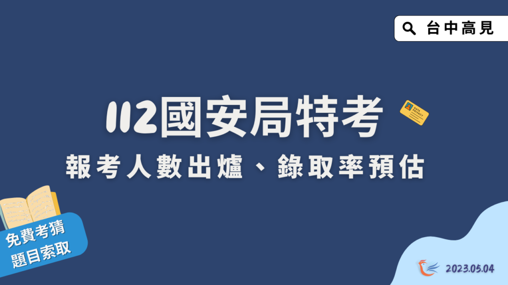 112年國安局特考報考人數共864人,預估需用名額為72名,初步預估總錄取率約8.33%。