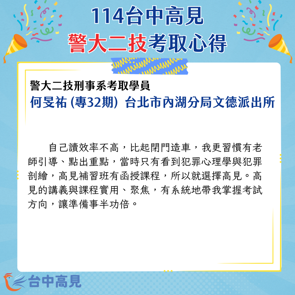 刑法與刑訴法是我最早就開始準備、也是投入最多時間的科目,重視法條運用與實務爭點的掌握,並透過歷屆試題搭配解題練習累積經驗。
