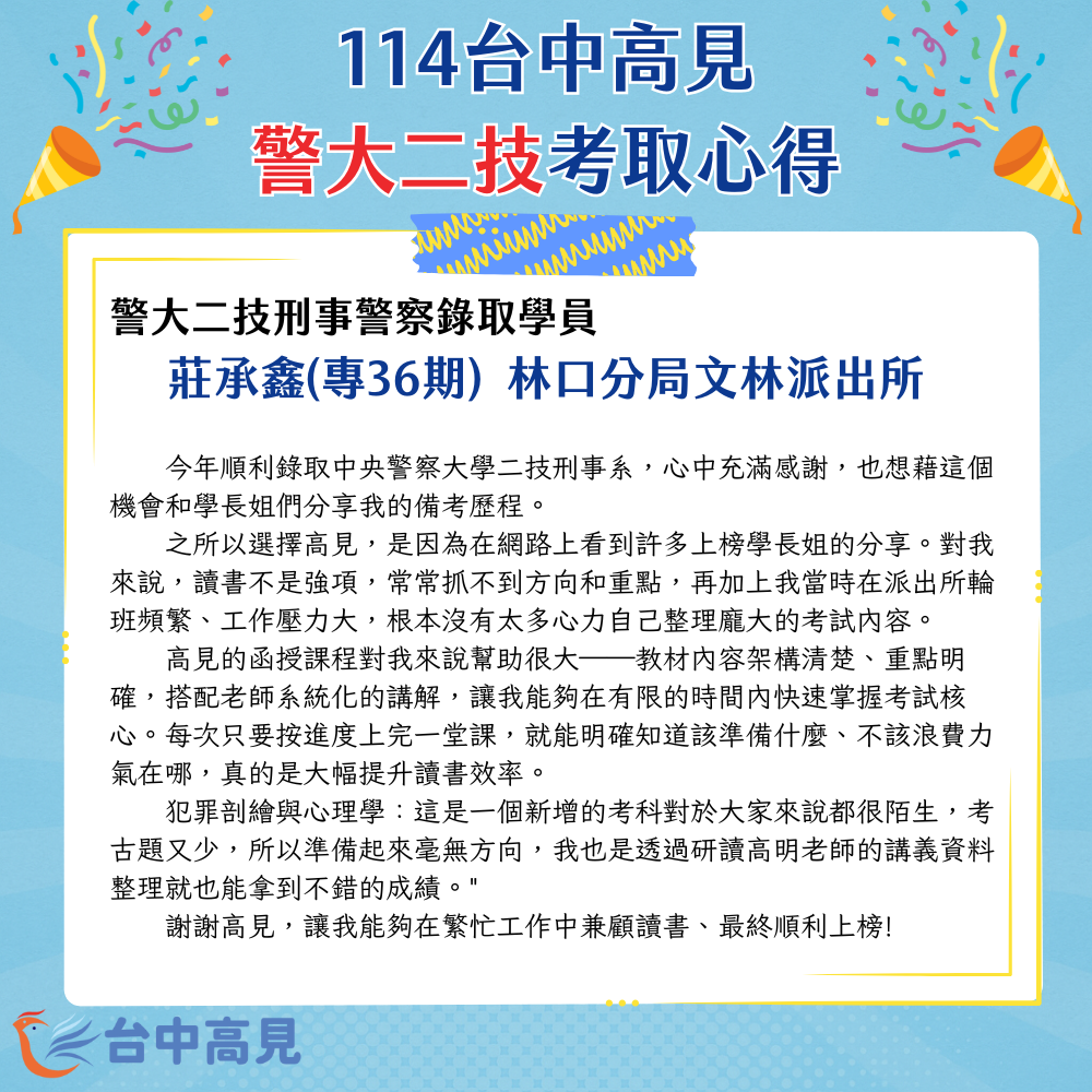 犯罪剖繪與心理學:這是一個新增的考科對於大家來說都很陌生,考古題又少,所以準備起來毫無方向,我也是透過研讀高明老師的講義資料整理就也能拿到不錯的成績。