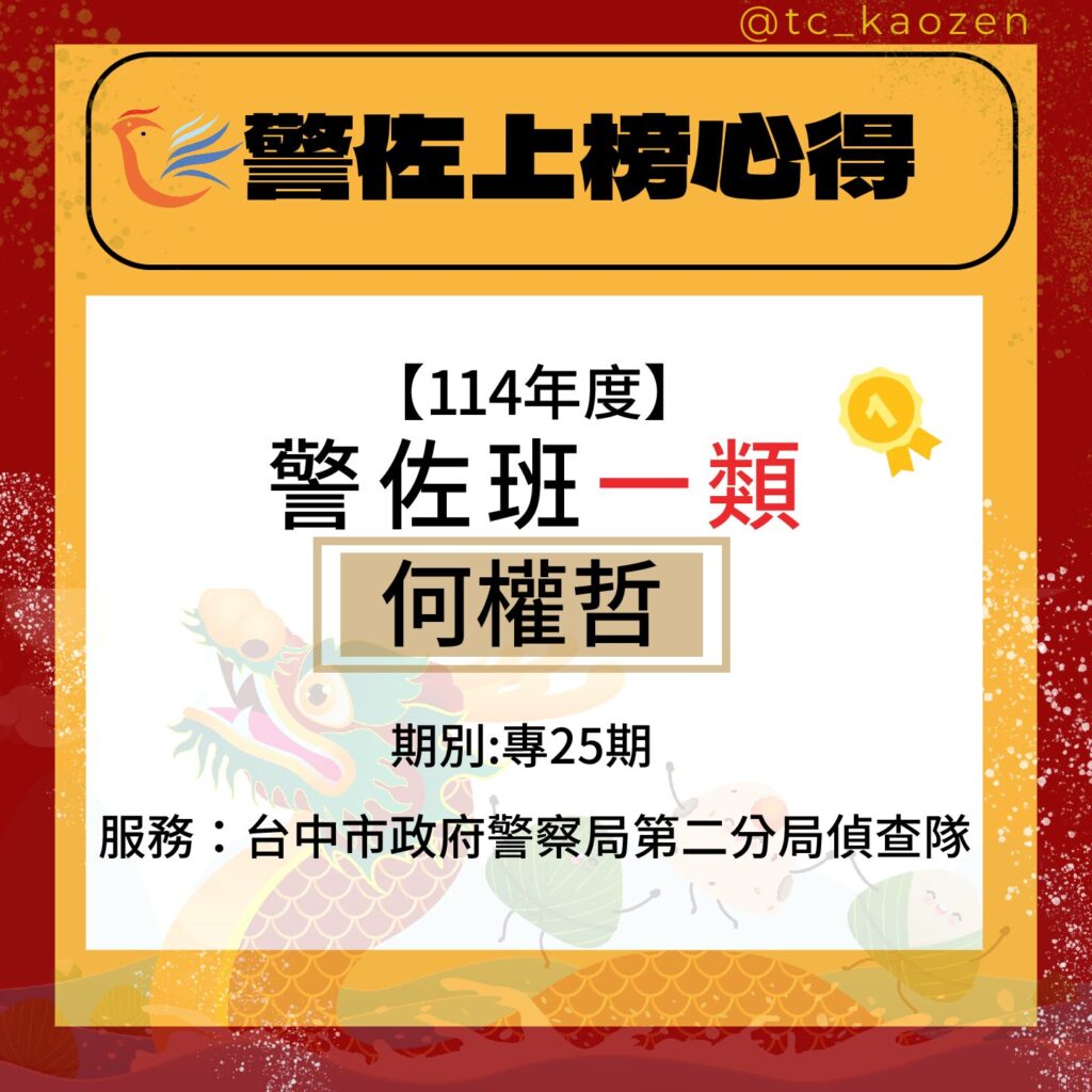 114警佐班一類|專25期_何權哲上榜心得