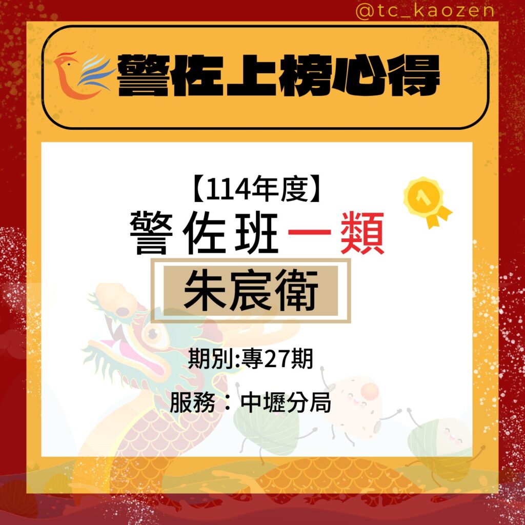 114警佐班一類|專27期_朱宸衛上榜心得