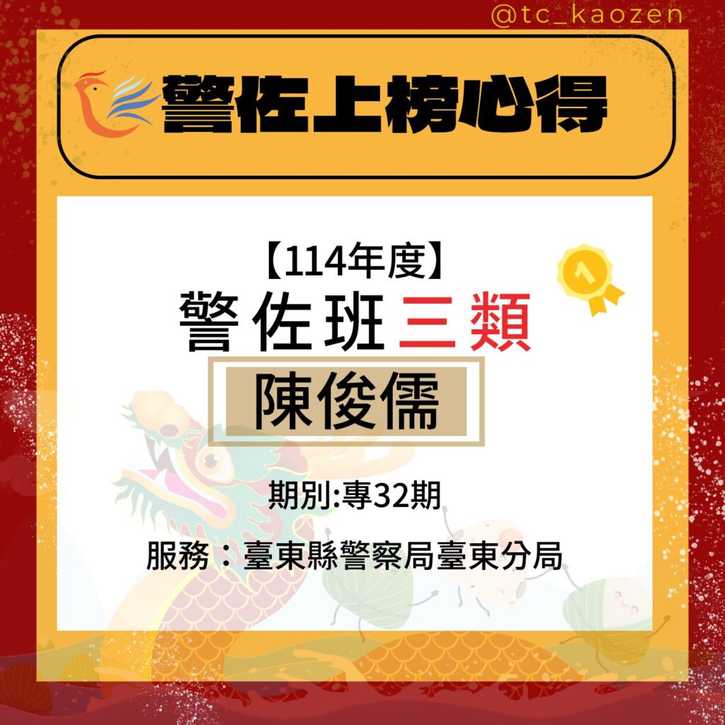 114警佐班三類|專32期_陳俊儒上榜心得