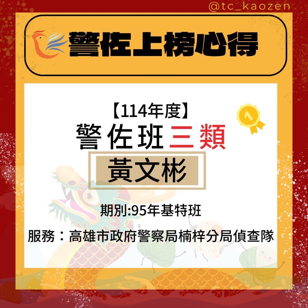 114警佐班三類|專33期_黃文彬上榜心得