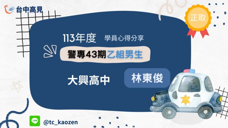 警專討論區 最新優惠 參加講座 準備心路歷程 這一年來在補習班準備考警專對我來說是一段充滿挑戰和成長的經歷。雖然最後上榜的機率渺茫,但我從學到了許多寶貴知識和人 […]