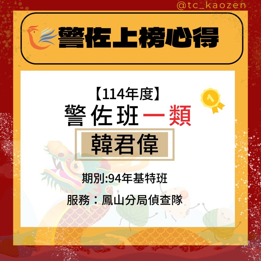 114警佐班一類|94年基特班_韓君偉上榜心得