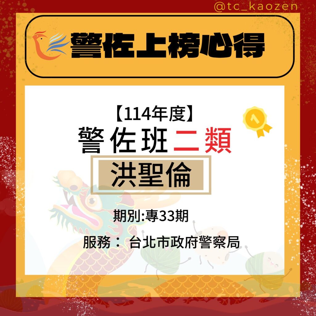 114警佐班二類|專33期_洪聖倫上榜心得